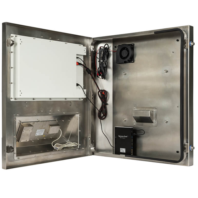 This stainless IP69K industrial PC cabinet improves workflow in wet production environments. Wall mount the slimline enclosure in the ideal location to improve efficiency in areas where you can't otherwise use a computer. Use the small-form-factor PC and VESA-ready, 24" monitor of your choice. Quick access lets you change, repair and upgrade your hardware at any time.