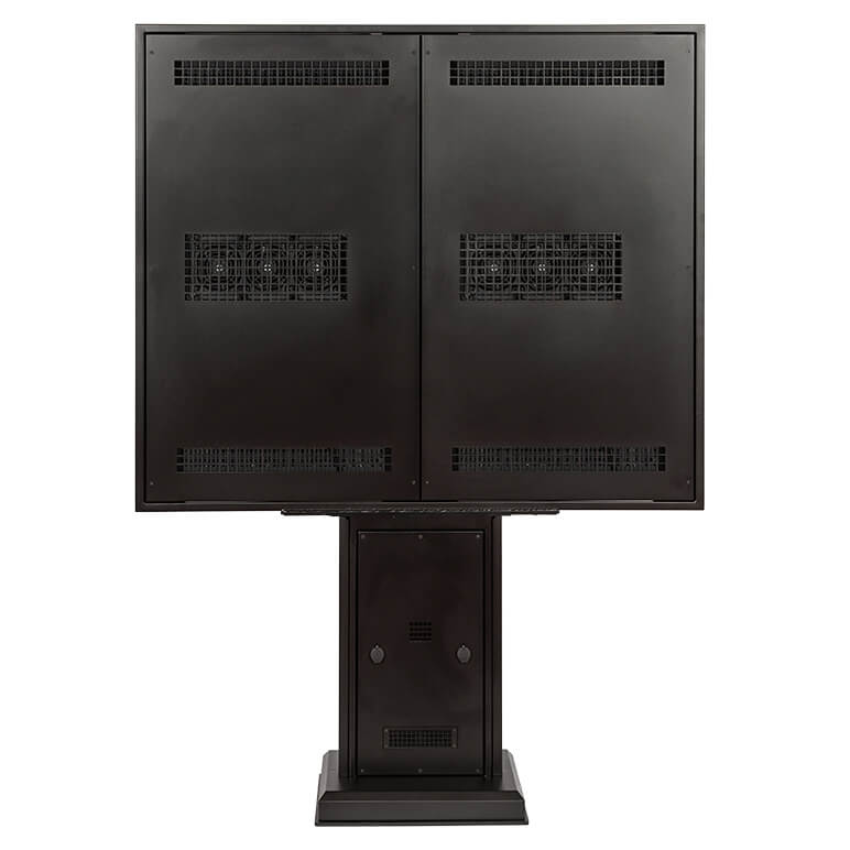 With a design officially approved by Samsung Korea, the totem can house up to three Samsung outdoor displays. The temperature surrounding your Samsung outdoor digital signage is kept cool and consistent through airflow management. Easy access enables you to upgrade your displays and media players with minimal effort, and an eye bolt positioned on the top of the totem allows for simple installation via crane.